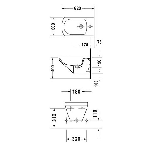 Caro 36х62см, биде, подвесное, без крышки, арт. 0290150000, Duravit